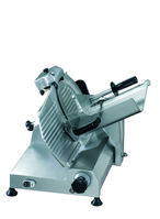 Trancheuse semi-automatique en inox et avec dispositif de coupe incliné, particulièrement adapté pour viandes froids. Avec protection des mains pour un fonctionnement en toute sécurité, avec protection contre les éclaboussures et affûteur intégré. Facile à nettoyer.