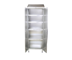 De fabrico em aço inox com prateleiras interiores.